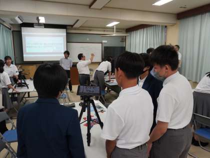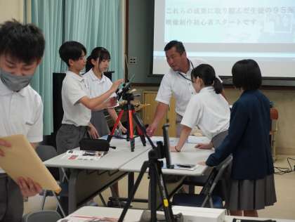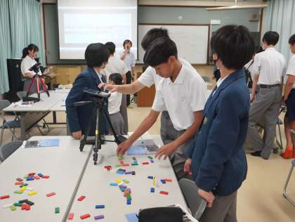 洛陽総合高等学校の先生からは、静止画からアニメーションを作る方法を教えていただき、グループごとにアニメーションづくりに挑戦しました。何百枚もの静止画を撮りそれを高速で切り替えることで動きのある映像に変えていました。
