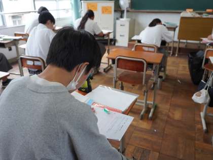 現代社会の状況について、意見文を書いていました。学習してきたことと自分自身の経験を踏まえて書いています。