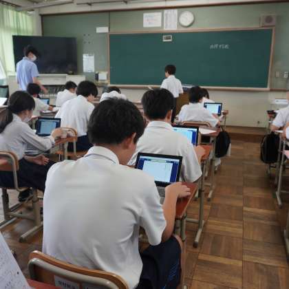 詩を読んでその感想をGIGA端末を活用してまとめていました。