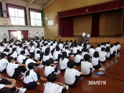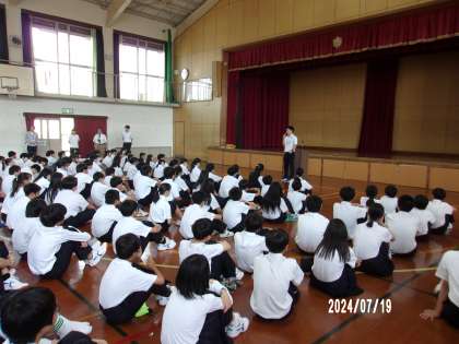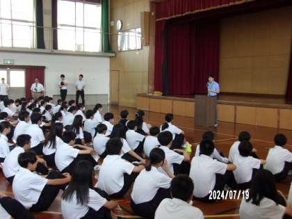 校長先生の話を受けて、学習面・生活面でどのように過ごすことが大切なのか、先生と生徒会から話がありました。
