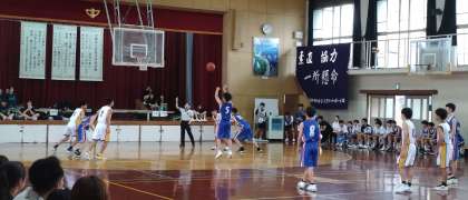 松原中学校にて、男子バスケットボールの初戦(VS松原中)が始まりました。序盤から白熱した試合が繰り広げられております。