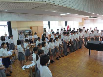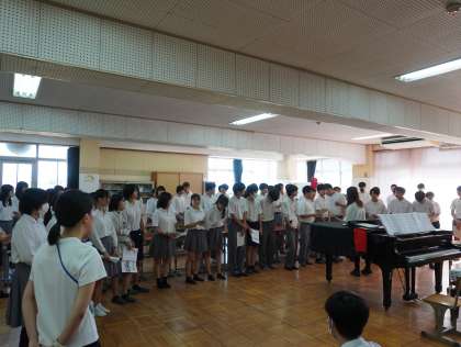 3年生は音楽室で全体練習中でした。