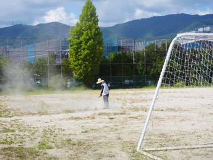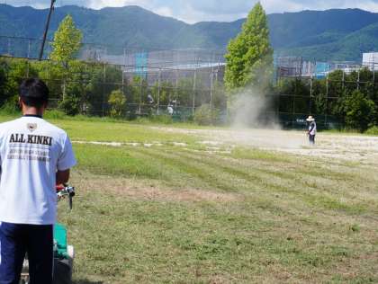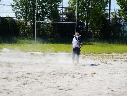 地域に住んでおられる方が、ボランティアで運動場の草刈りを行ってくれています。