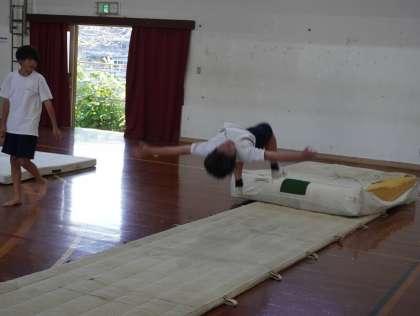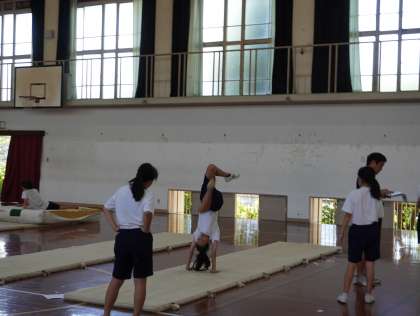 3年1組は体育の授業でマット運動を行っていました。