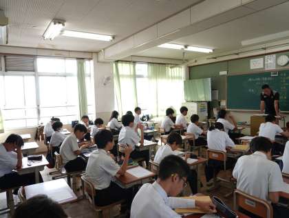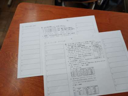 社会科では学習確認プログラムに向けて復習の小テストを行っていました。