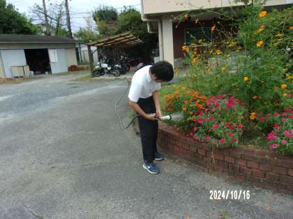 今朝もお花のお手入れ