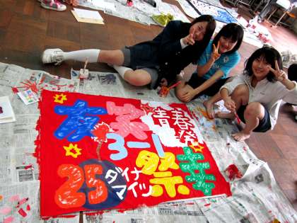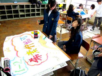 学級旗が仕上がったようです。家庭訪問中の放課後などを利用して学級旗を生徒が製作しました。この学級旗は日頃は教室に掲示されていますが、全校生徒が取り組む西陵祭や生徒総会のような活動場面では教室を体育館やグランドで活躍します。色とりどりの中に学級目標が示され良い出来ばえです。