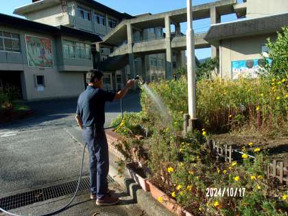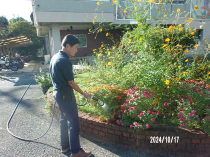 今朝もお花の水やり、