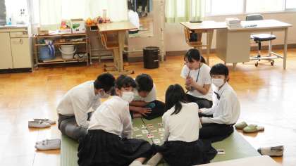 国の特徴について聞き国名をあてるカルタ取りをしていました。