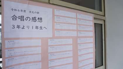 1年生のフロアに西陵祭文化の部での合唱について3年生からの感想が貼られていました。