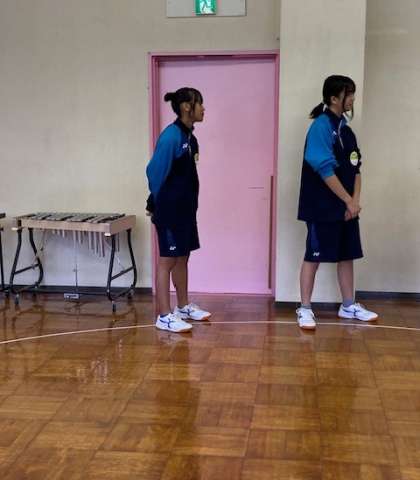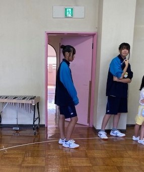 園児の子たちと一緒に体を動かしながら、頑張っています。