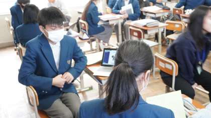 3年1組は英語の学習。