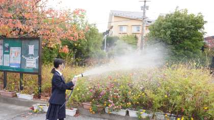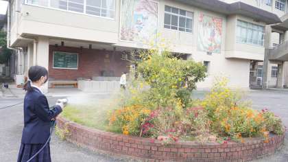 環境委員の生徒たちが今日も水やりをしてくれています。