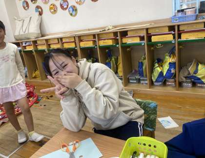 園児と一緒にお絵かきや外遊びを全力で行っています。