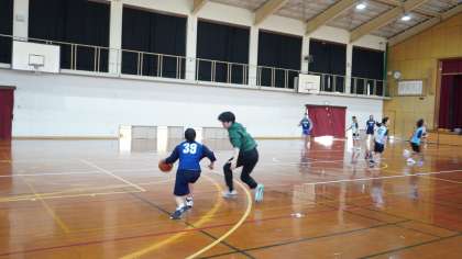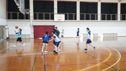 女バスはパスを出すときに視野を広く保つことを意識しながら練習中。