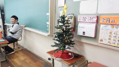 教室の前にはクリスマスツリーが飾られていました。