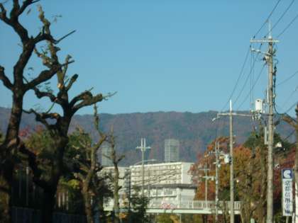 校門前から見える西の山も