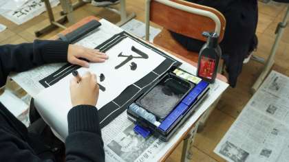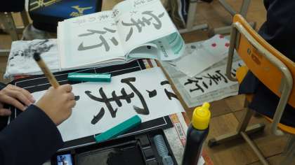 集中しながら一画一画丁寧に書き進めています。
