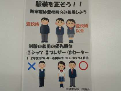 標準服の着こなしについて評議員からのポスターが掲示されていました。