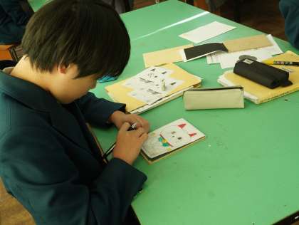 下絵をカーボン紙で写し取っていました。