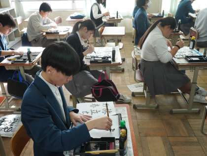 集中して取り組んでいます。心を落ち着けて書きましょう。