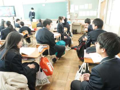 ペアで肯定派と否定派に分かれてディベートを行っていました。