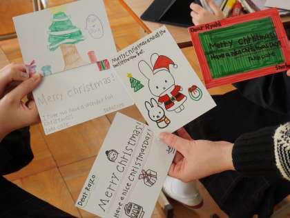 クリスマスカードづくりを行っていました。