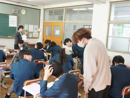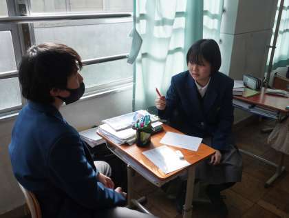 グループで前の人の「もし〜だったら」に続くように文章を考えています。