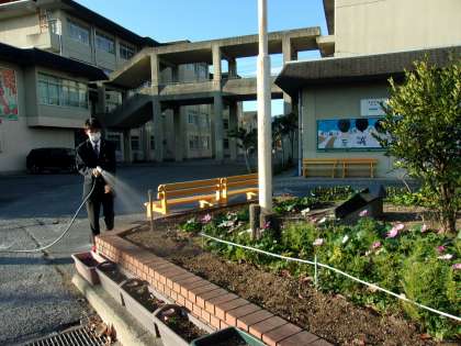今朝もお花の水やり