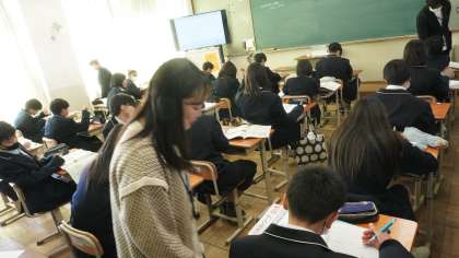 1年2組は英語の学習。
