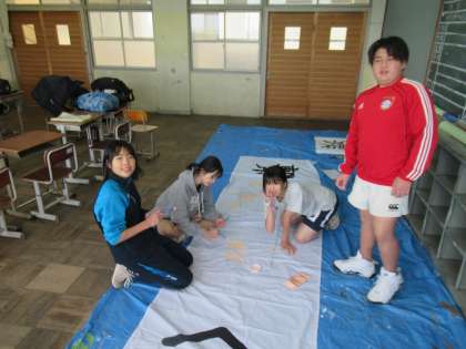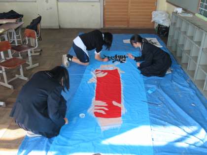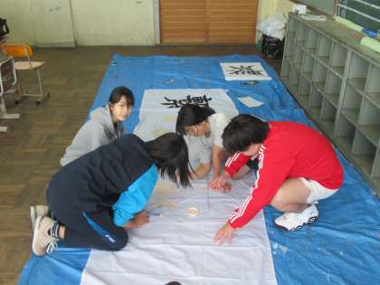 生徒会スローガン旗を作成してくれています。