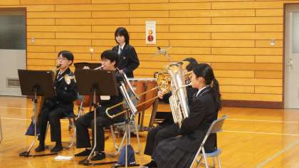 吹奏楽部の2年生は、明日のアンサンブルコンテストに向けて最後の調整中です。