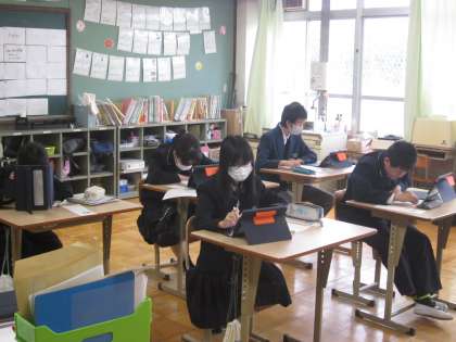 4組はタブレットを活用して、一人一人課題に取り組んでいました。