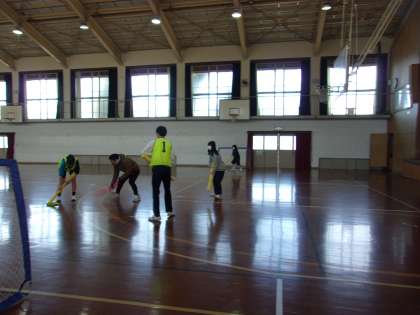 フロアホッケーを楽しそうに取り組んでいました。