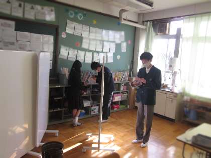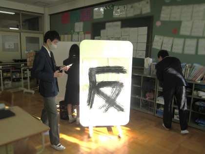 4組では、書初めの片づけをしているところでした。