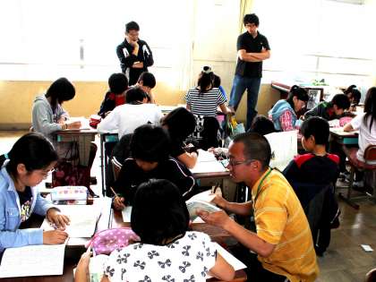 小中連携の一つである授業訪問について、昨年度は校下の2小学校へ本校の教員が一斉に出向いて授業訪問することが授業時数確保等からかないませんでした。その反省から今年度は定期的に毎月のある週において中学校から授業の空き時間を利用して2小学校に出向いて授業を見させていただく「授業訪問週間」を設定することにしました。この取組は小学校の授業に参加して中学校の授業を見直すことを目的としたものです。授業訪問の取組には小学校の校長先生にも理解をいただいて実施しました。昨日その1回目を竹の里小学校で行い本校から2名の教員が訪問しました。授業は6年生の国語を見せていただきました。授業は3人1グループの授業形態で行われていて教科書に書かれている内容を2つの視点から「一人学習」でまとけ記述し、「グループ学習」でその記述した内容を紹介しあうという授業展開でした。児童の自然なグループ活動が印象に残りました。