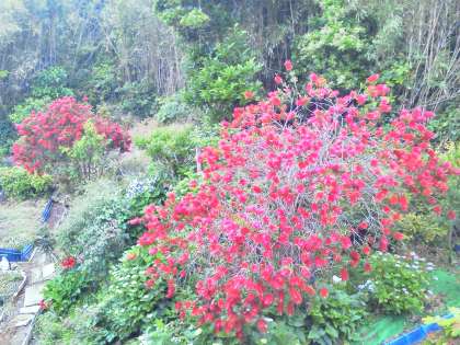 民宿の裏山に咲く「ブラシノハナ」。この青島に咲くブラシの形に似ているので名付けられた珍しい花です。
