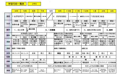 本校生徒が1年間に学ぶ学習内容を一覧にして本日、全校生徒に配布しました。1学年から3学年まで全ての教科について月ごとに学習内容を大まかではありますが記述してあります。生徒がどの時期にどのような学習をしているかを保護者の皆様が知ってもらうために作成したものです。明日9日は休日参観です。学習内容一覧をご覧になって来校いただければと思います。