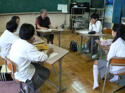 自分たちの住んでいる洛西ニュータウンについて調べようと9月9日の放課後に洛西地域について詳しく知っておられる平井義昌さん(前、竹の里自治連合会長)をお招きして1年生が聞き取りをしました。生徒の洛西ニュータウン建設の経緯の質問からはじまったひとつひとつの質問に丁寧に答えて下さった平井さんの人柄に生徒たちはうちとけて、いろんな質問ができ有意義な聞き取りの時間を過ごすことができたようです。この聞き取りをした結果は西陵祭で発表される予定です。