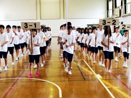 18日(火)は西陵祭体育の部の行進練習を体育館で行いました。1週間前の11日の予定が雨だった為に18日に延期になったのですが、またしてもあいにくの雨。体育館で学年ごとの練習となりました。グランドでの練習とは趣きが違って気分的に乗りにくい部分があったのではないかと思います。26日が予行となっています。全学年が揃う予行ではしっかりとした態度で臨んで西陵中学校の伝統を引き継いでくれることを期待しています。