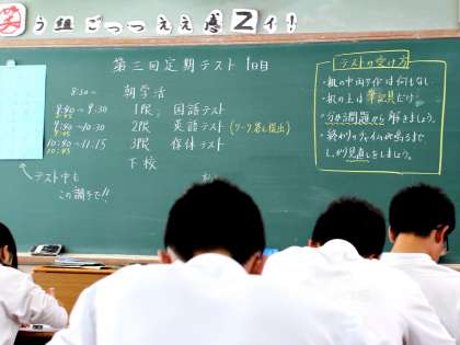 10月9日(火)、10日(水)の両日は第3回定期テストを実施しました。3年生にとっては、進路に向けた大切なテスト。そのテスト中に3年生の教室を覗きました。教室にはピンと糸が張ったような空気が漂っていて、黒板には「テストの受け方」の板書があり生徒がテストを受ける適度な緊張感を醸し出していました。