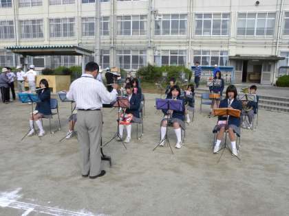 吹奏楽部が福西学区民体育大会で演奏