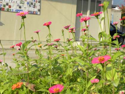 いま百日草が校門の東にある花壇で太陽に向かって背を伸ばしてすくすくと育っています。百日草はその名の通り長く咲く花です。どの花もそうですが、手入れが大事です。百日草は日当たりがよく、土の表面が乾いたらたっぷりと水やりをすることが大切です。手入れをしてこのようにすくすく育つ百日草をみて、太陽の陽ざしのような温かい子への愛情、土が乾けば水やりをするように子どもの様子を看取りながらの支援があれば、百日草のように背を伸ばしすくすくと育つのだと、あらためて子育てや教育について自身のこれまでを思い返しました。