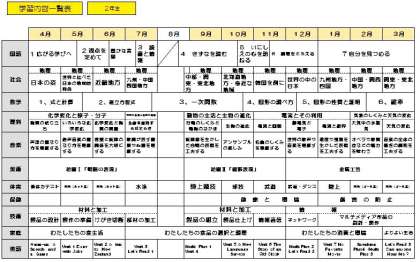 今年度の1年生から3年生までが学習する内容の一覧表です。遅くなりましたが学年別にして掲載します。