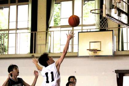 秋季大会(新人戦)が始まっています。7日(土)に本校で男子バスケット部の試合がありました。対戦相手は桂中学校。これまで春季大会、夏季大会と3年生が不在のチームで苦杯をなめてきた1,2年生チームが同学年と対戦できる秋季大会。これまでの培った力が発揮できる大会です。これまで公式戦よりシュートの決定率が上がり、パスが通るようになっていました。前半では2,3点をリードしながらも前半終了では30−31と1点ビハインドで折り返し。しかし後半ではランニングシュートを1本1本得点に結びつけて67対59で競り勝ちました。秋季大会はリーグ戦。幸先の良いスタートとなりました。明日の8日に2戦目が控えています。連勝といきたいものです。