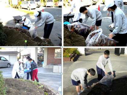 先日、校門中央の円形花壇に花を植え代えることをお知らせしましたが、昨日の8日に花壇の土を掘り返して新たに腐葉土をいれる土壌の整備を育成学級の生徒たちが手を汚し、汗を流してやってくれました。こういった作業があってきれいな草花が咲き、私たちの心を癒し、感性を豊かにしてくれるのだと思います。花壇に咲いた花を見て美しいと感じると同時にその裏側にある人の手入れにも心を向ける人になってほしいものです。