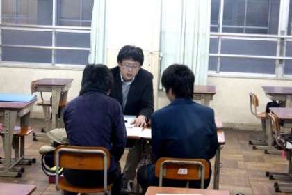 先週から三者懇談が始まっています。特に3年生は進路決定にむけて詰めた話し合いが行われています。この懇談が終れば冬休み。3年生の冬休みはこれまでとは違った過ごし方になります。目の前に進路実現が迫るなか、1、2年生時の頃のような開放感に浸る冬休みにはなりきれません。今年の冬休みの期間は例年より少々長く16日間です。この16日間をどのように過ごすかは3年生には重要なポイントです。ある教育雑誌に目を通すと、冬休みの学習について記載されていました。そこには苦手教科を勉強することは学力をあげる一つであるとあります。確かに得意教科を伸ばしても、苦手教科はその「足を引っ張る」ということはありうることです。スポーツの世界でも弱点のある選手は長けるところがあっても御(ぎょ)し易いといわれます。この雑誌には冬休みは弱点に取り組んだ結果、成果が上がったというデータを紹介していました。何事にも平均に出来る上に一つ長けるところがあると結果は良いということなのでしょう。画像は3年生の面談の様子です。