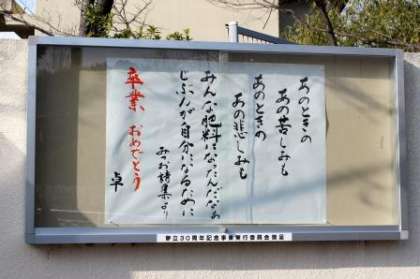 朝8時ごろは雨が降っていましたが、一転しての陽ざし。卒業式を祝ってくれるかのようなお天気です。今日60名が卒業します。立派な卒業式になるよう教職員一同、昨日から全員で準備し、今も最終準備に余念がありません。