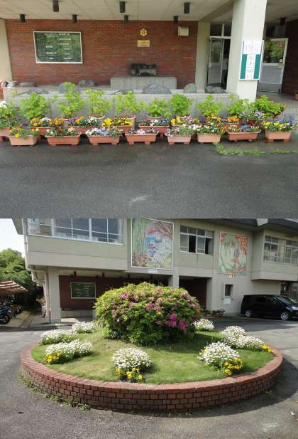 先月のホームページに花壇の様子を載せましたが,今月も用務員さんが毎日手入れをしてくださり,綺麗な花が西陵中学校を明るくしてくれています。校門の外にもプランターを出し,地域の方々にも見ていただけるようにしました。6月にアジサイも咲きそうです。来月も楽しみですね。