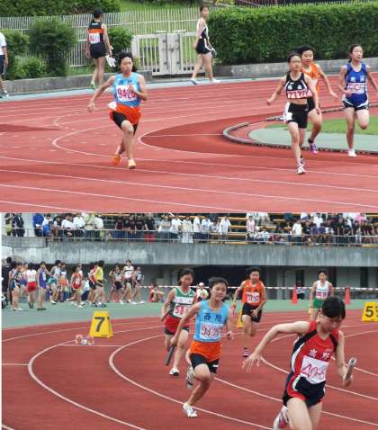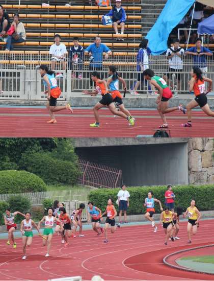 陸上では他の競技より一足早く,夏季大会が14日(土),15日(日)の両日,西京極陸上競技場で開催されました。3年生3名,2年生2名が参加。女子200Mで決勝に残りましたが,決勝では7位となり府大会出場はなりませんでした。よく頑張りました。